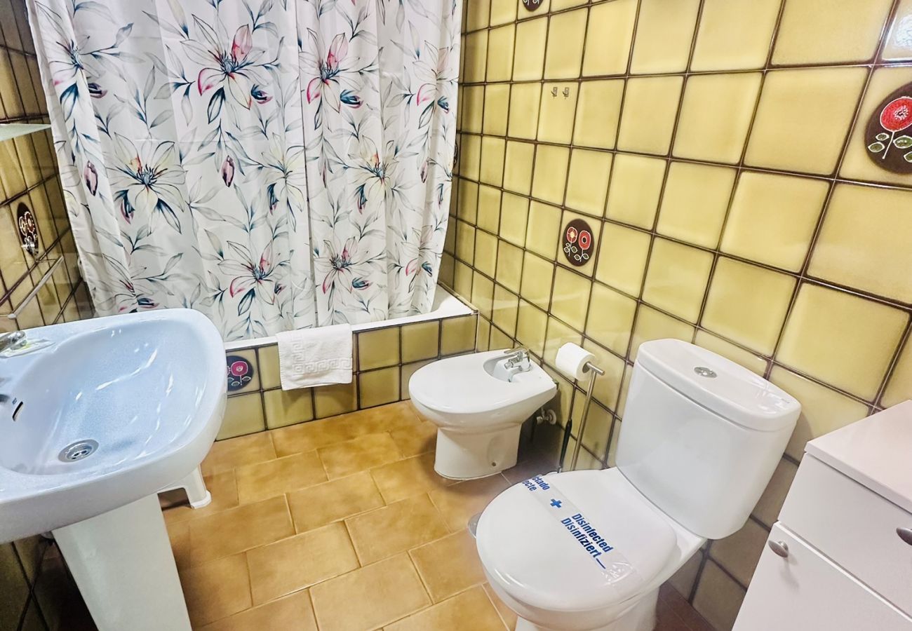 Apartamento de 75 m² con capacidad para 6 personas, ideal para unas vacaciones en familia o con amigos. Dispone de 2 dormitorios, uno con cama de matrimonio y otro con dos camas individuales, además de un cómodo sofá cama doble en el salón. Cocina independiente totalmente equipada con placa de inducción, nevera, congelador, horno, microondas, hervidor de agua, cafetera, tostadora, vajilla, menaje de cocina y lavadora. Baño moderno con ducha.