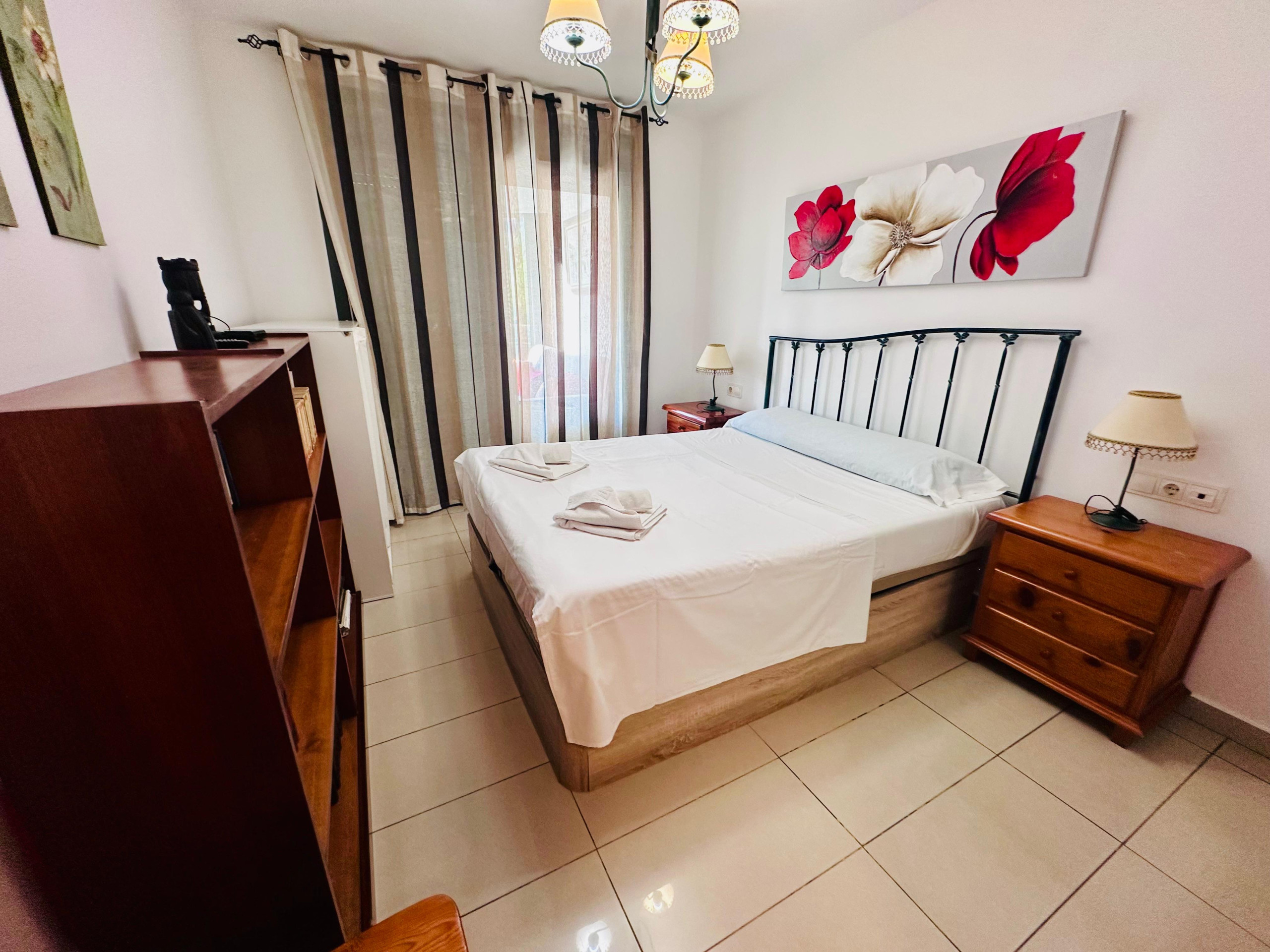 El apartamento en planta 7 cuenta con 70 metros cuadrados distribuidos para ofrecer un máximo confort. Dispone de dos dormitorios que pueden alojar hasta 6 personas cómodamente: un dormitorio principal con cama doble y otro con dos camas individuales, además de un sofá cama que permite flexibilidad en el alojamiento.