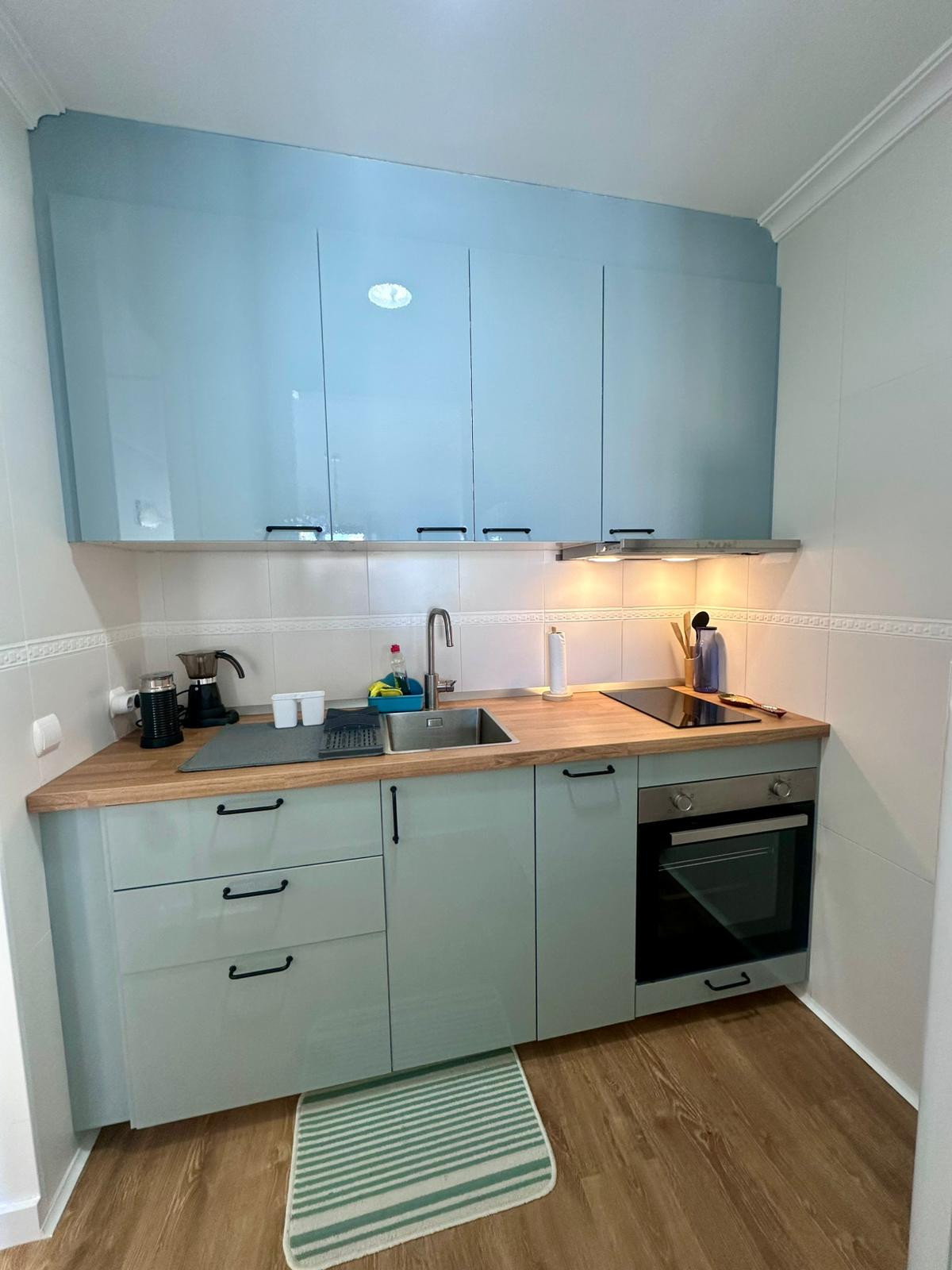 Cocina equipada con nevera, congelador, horno, microondas, hervidor de agua, cafetera, tostadora, vajilla, utensilios de cocina y lavadora. Incluye TV, WIFI, plancha.
