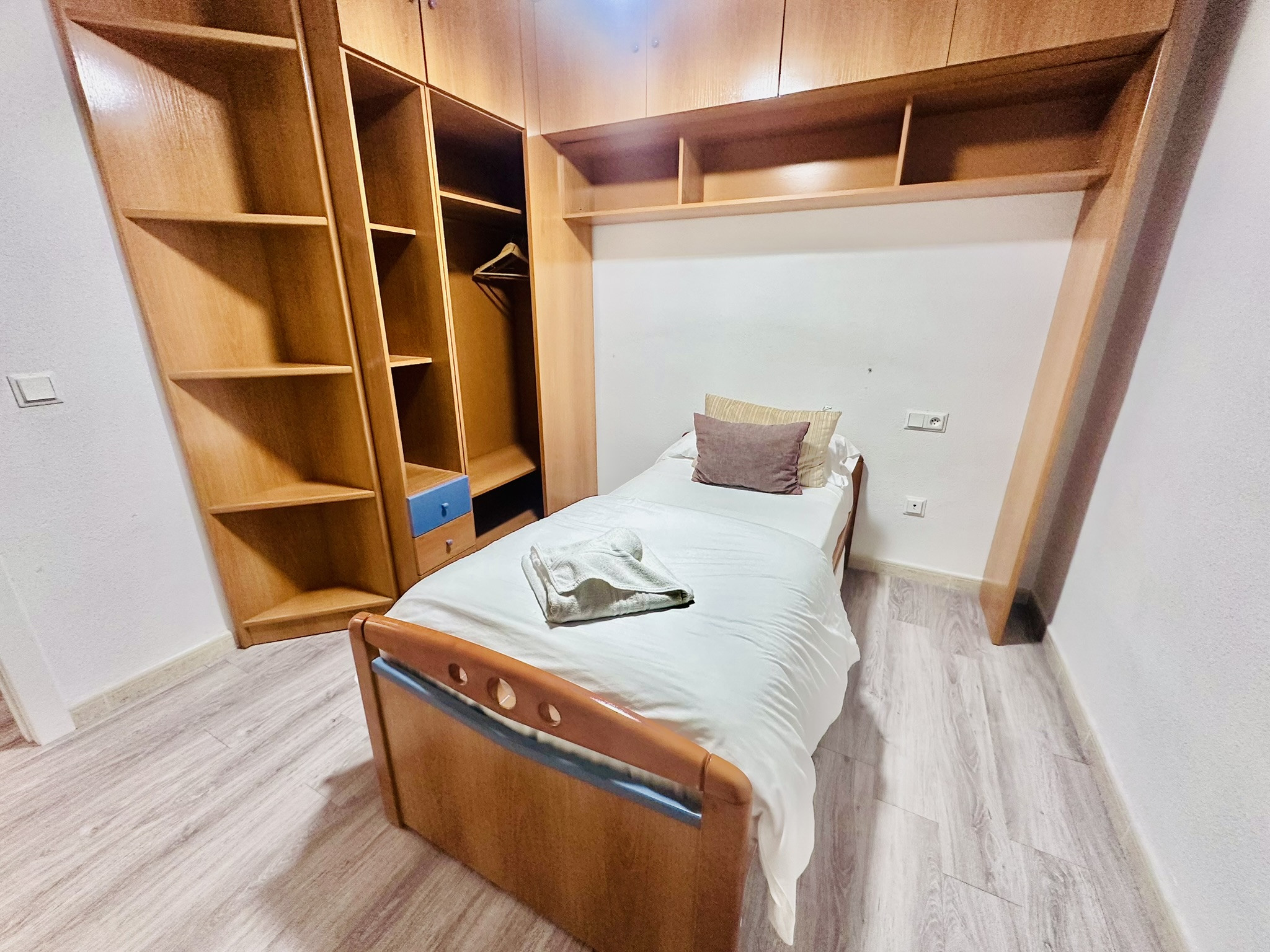 Bonito apartamento con una urbanización excelente. Ideal para una familia de 4 e incluso 5. Bien equipado, con ventiladores de techo nuevos en todas las habitaciones, por lo que no pasas calor en ningún momento. Muy cerca de la playa y con una parada de bus justo en la puerta.