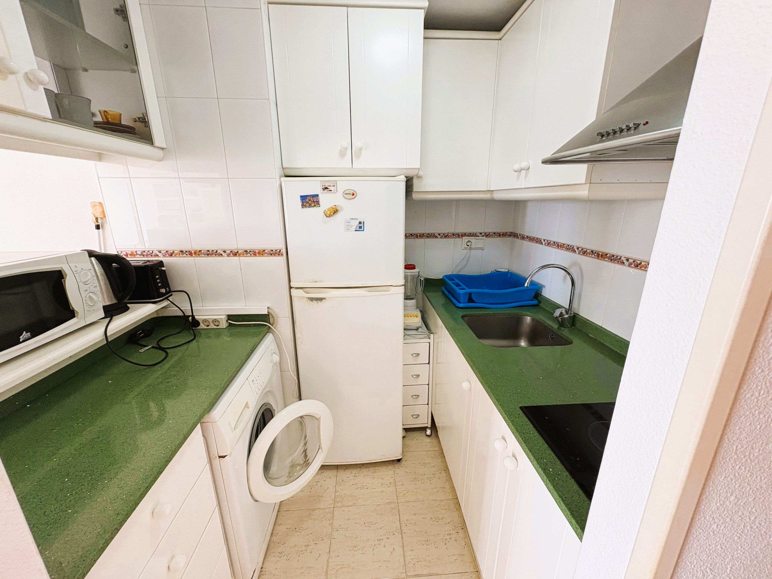 The kitchen is fully equipped with appliances such as a fridge, microwave, coffee maker, toaster, kettle and juicer. Additionally, it has all the necessary kitchen utensils to prepare delicious meals during your stay.
