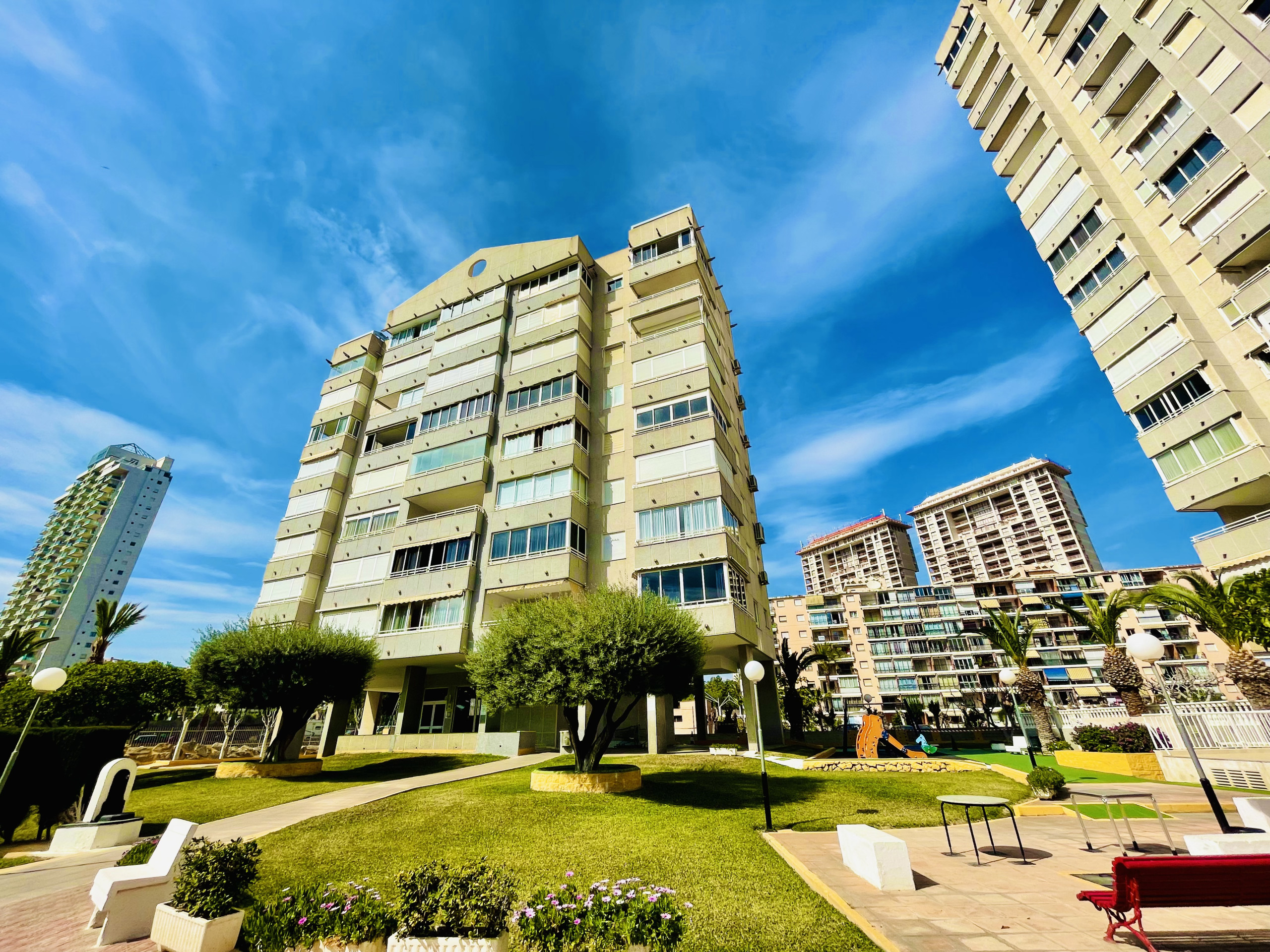 Among its outstanding features are a covered private parking, garden and an ideal location for families. It is very close to supermarkets, bus stops and a short distance from beaches such as Poniente and Levante. Points of interest such as Terra Mítica, Aqualandia and the Serra Gelada Natural Park are a short distance away.