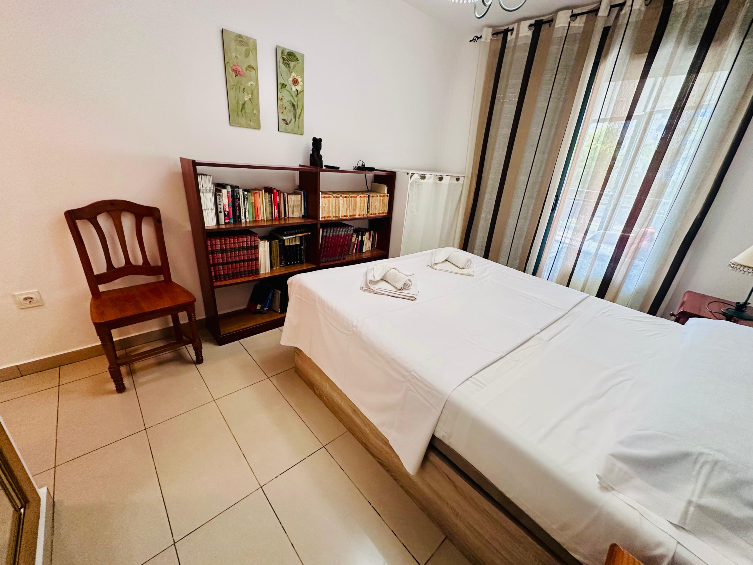 90 m², accommodates up to 6 people. It offers 2 bedrooms: one with a double bed and another with two single beds, plus a double sofa bed in the living room. Bathroom with shower. Fully separate kitchen equipped with ceramic hob, fridge, freezer, oven, microwave, dishwasher, washing machine, kettle, juicer, coffee maker, toaster, crockery and basic kitchen utensils. TV in the living room and master bedroom, WIFI, iron. Air conditioning and heating with heat pump.