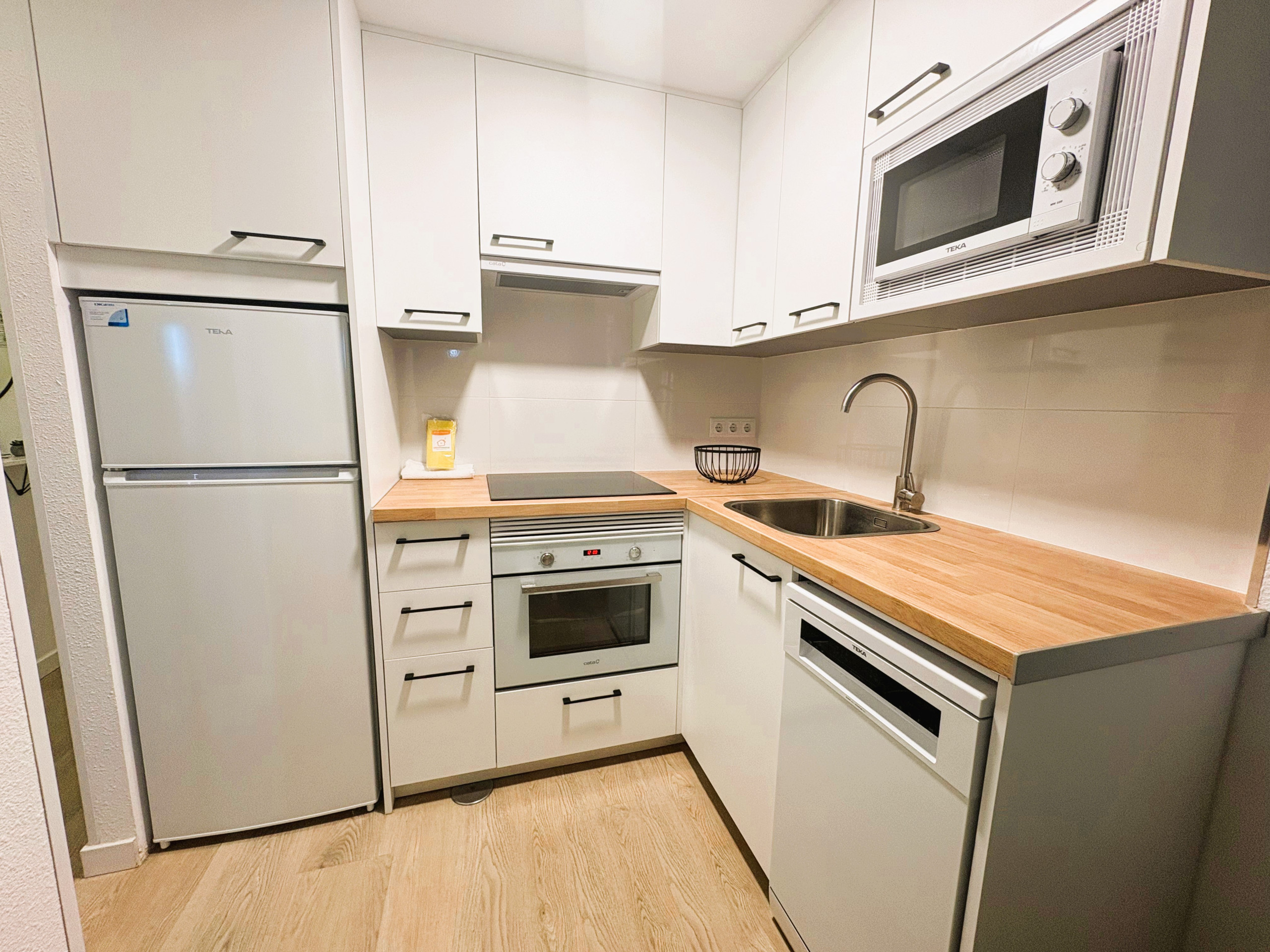 La cuisine est entièrement équipée d'électroménagers de dernière génération, y compris un lave-linge, un lave-vaisselle, un four, un micro-ondes, une cafetière, un grille-pain et une large variété d'ustensiles de cuisine. Parfaite pour préparer de délicieux repas pendant vos vacances.