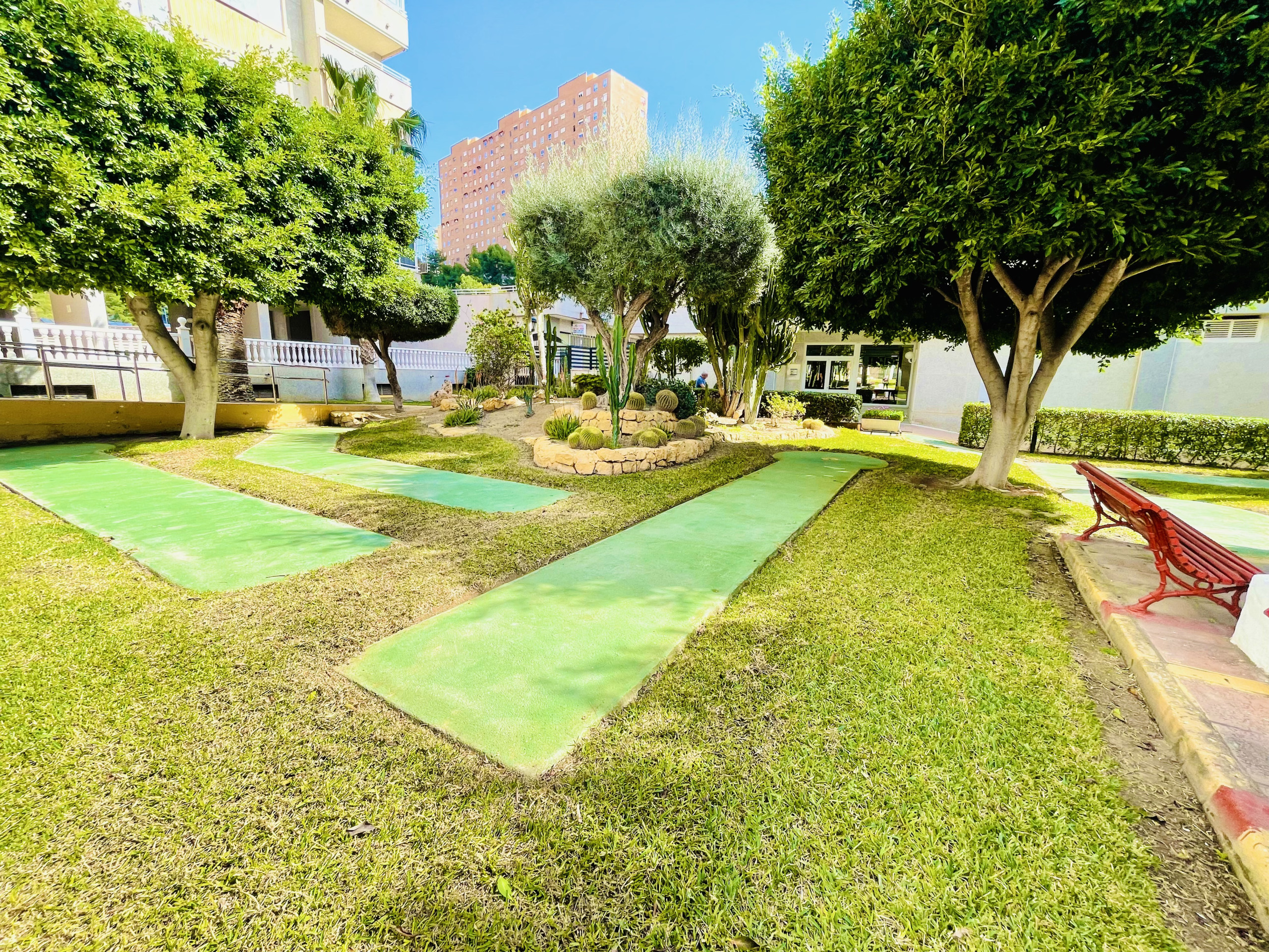 Parmi ses caractéristiques, on peut citer un parking privé couvert, un jardin et un emplacement idéal pour les familles. Il est très proche des supermarchés, des arrêts de bus et à courte distance des plages comme Poniente et Levante. Des sites d'intérêt tels que Terra Mítica, Aqualandia et le Parc Naturel de Serra Gelada sont à proximité.