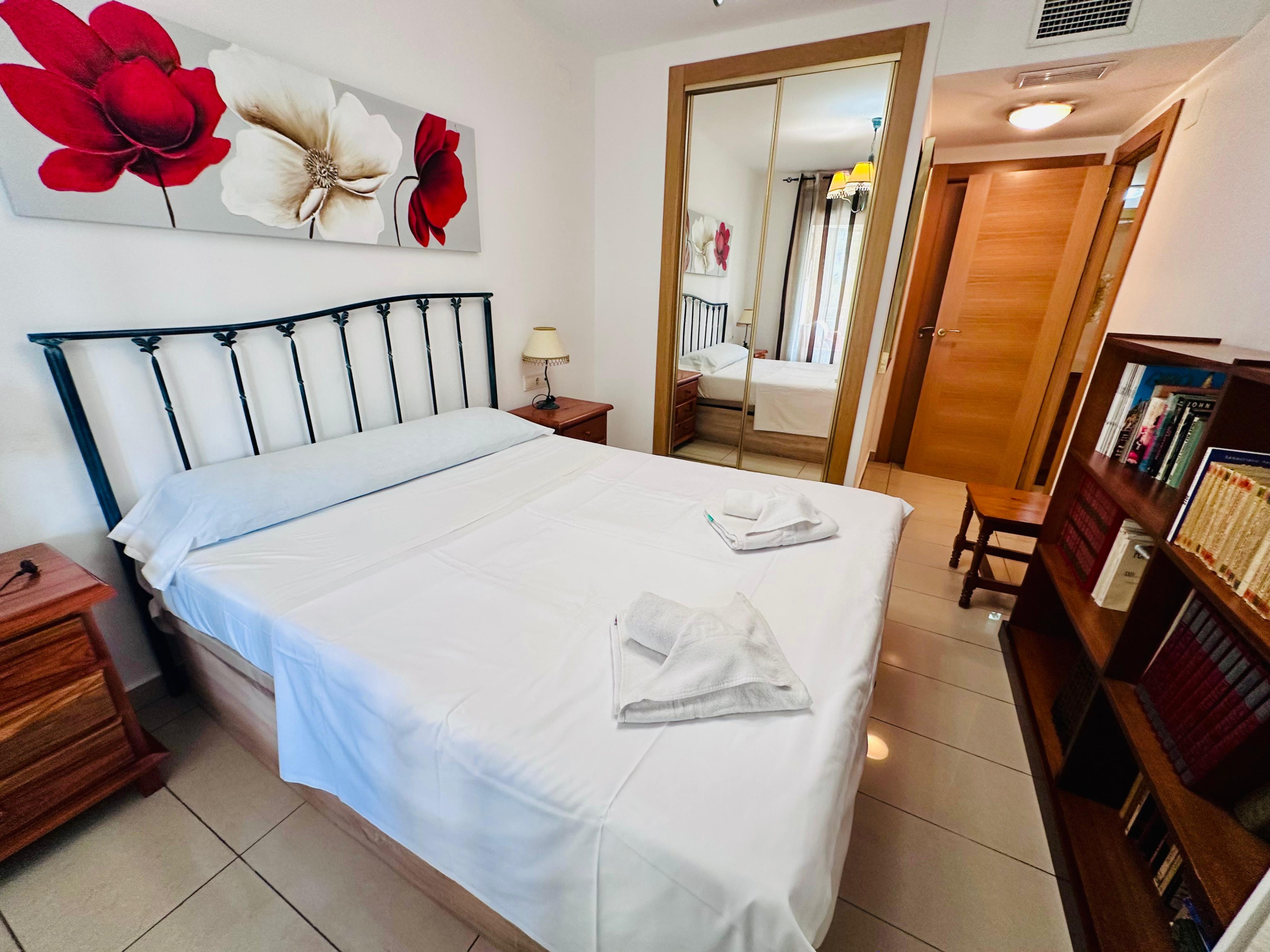 90 m², capacité pour 6 personnes. Il dispose de 2 chambres : une avec un lit double et l’autre avec deux lits simples, ainsi qu’un canapé-lit double dans le salon. Salle de bain avec douche. Cuisine totalement indépendante, équipée avec plaques vitrocéramiques, réfrigérateur, congélateur, four, micro-ondes, lave-vaisselle, lave-linge, bouilloire, presse-agrumes, cafetière, grille-pain, vaisselle et ustensiles de cuisine de base. TV dans le salon et la chambre principale, WIFI, fer à repasser. Climatisation et chauffage par pompe à chaleur.
