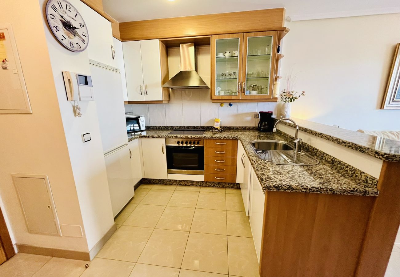 De plus, l'appartement est entouré d'attractions et d'activités pour toute la famille. À 4 kilomètres, vous trouverez le terrain de golf "Las Rejas Golf", idéal pour les amateurs de golf. À 5 kilomètres, le parc d'attractions "Terra Mítica" vous attend pour une journée pleine de divertissement. Pour ceux qui préfèrent les aventures aquatiques, les parcs "Aquanatura" et "Aqualandia" se trouvent à seulement quelques kilomètres.